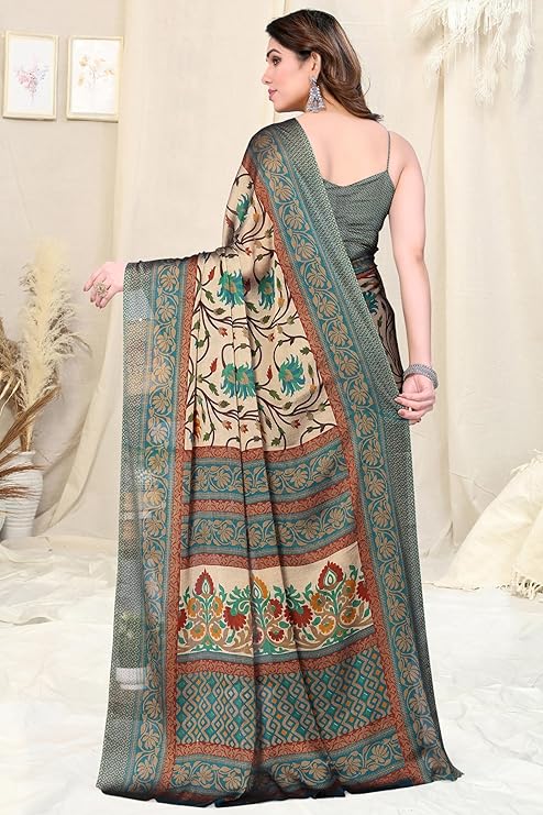 FASHION Women's Chiffon Floral Printed Saree with Blouse Piece