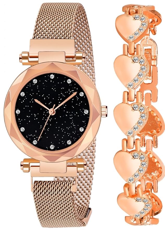 Women Girls Stylish Diamond-Studded Stainless Steel and Mesh Bracelet Designs with Gift Boxes